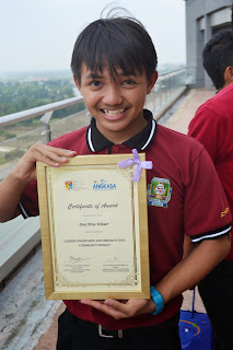 This project is about observing the sun's solar flare activity. My team and I had to build a some sort of satellite contraption to receive very low frequency radio signals from australia and japan. Then we had to monitor the wave pattern 24 hours. If there's sudden change in the wave pattern, that means there's a solar flare happening out there in space. During the judgement day (at the National Space Agency!), we're all kinda felt a bit inferior to SSP as their satellite are much more prettier. However, during their presentation, I asked a question "For 1 month you've been doing this, don't you get a single solar flare?". And they don't. They didn't get to see any solar flare so that's the end of them and we got the first place.